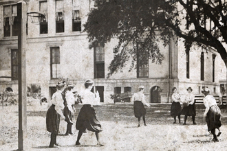 Now, as for Clara Gregory Baer, by the time she retired she had become the foremost pioneer for women’s physical education in the South and had a variety of accomplishments under her belt. In 1893 she helped facilitate the second compulsory physical education law in the nation. In 1895 she published the first set of rules for women’s basketball. In 1907 she instituted the first physical education bachelor program in the South; and by inventing the Newcomb Ball she was the first woman to invent a game that became a varsity sport at the school and college levels.